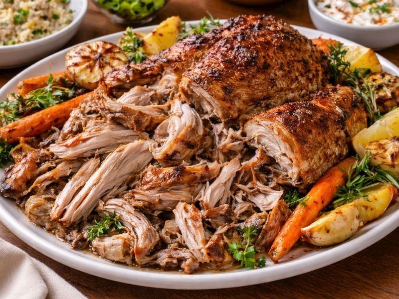 • Fırından çıkan hindiyi dinlendirin, didikleyerek sebzelerle birlikte sıcak servis edin. Afiyet olsun.